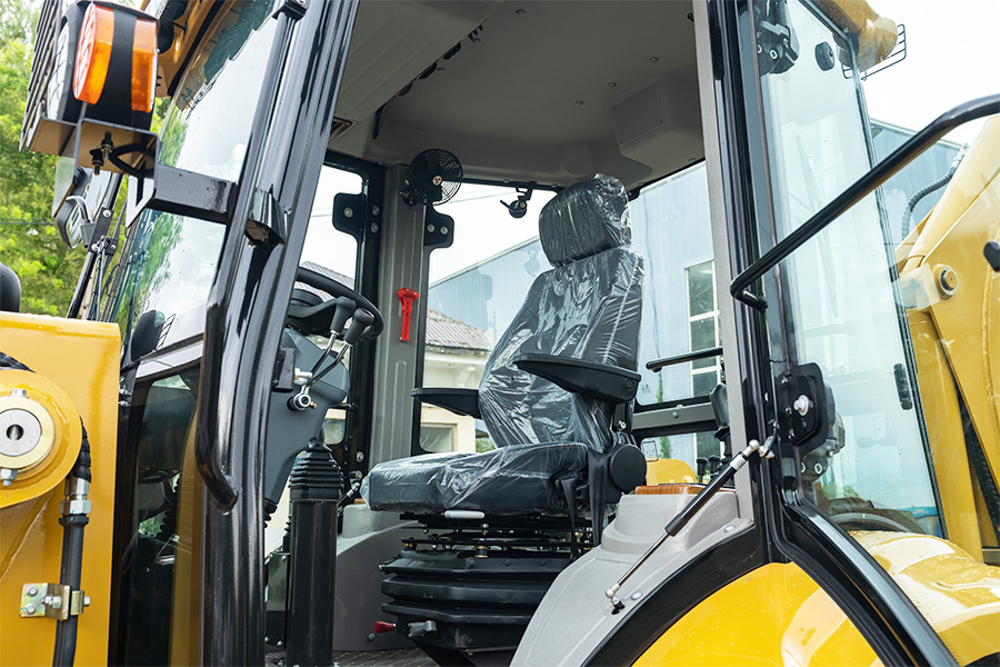 The suspended shock-absorbing 360-degree rotating seat with a seat belt improves the comfort and safety of the driver.