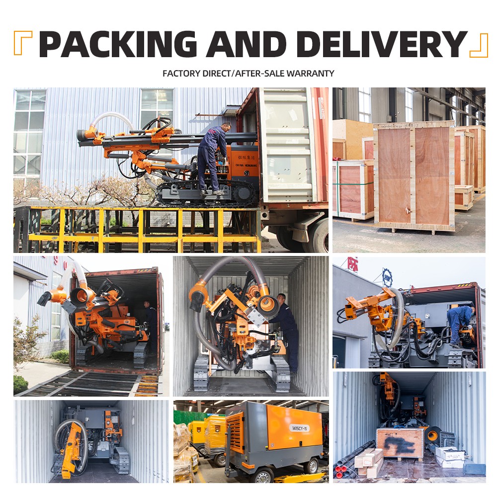 The DTH drilling rig is specifically designed for drilling blast holes in medium to hard rock, with a diameter range of 90-130 mm and a maximum depth of 24 m.